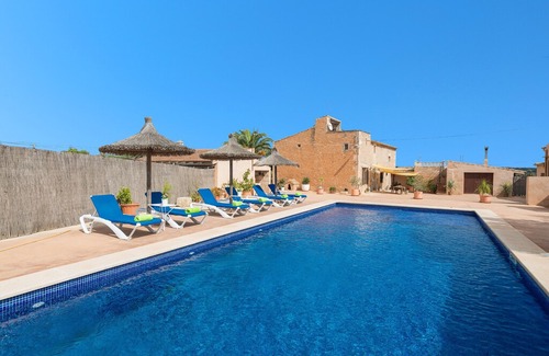 Beautiful country house with private pool 3 km from the beach and with capacity for 6 guests in Ses Salines.Shall we go to the beach or lets stay at the pool? this is going to be the question you will make yourself every day because this finca has everything: a private pool and a nearby beach only 5 minutes driving. If you prefer to stay at home, sun lovers lie down on one of the sunbeds to sunbathe or under the parasol. The salt pool is enormous sizing 12x5 metres and with a depth between 0.2 and 1.8 metres. Kids can splash around at the pool shallower area while the adults swim. This pool has room for all of you. After exercising, having breakfast under the ficus tree is just great. The terrace is quite spacious and there is a lot of room for children to play and run. An exterior shower is ideal for refreshing from time to time. There is a porch at the back of the house, a dreamy place to share a bottle of champagne in the evening or enjoy a barbecue with your loved ones. The property is fenced and privacy is total because there are not neighbours around. At the same time this finca is the home for many animals like dogs, cats, pigs, gens and partridges. There is a special area for them in the property and the owner comes every day to take care of them.The property has only one floor and it is characterised by a country style, with warm wooden furniture and natural stoned walls, without relinquishing a modern equipment like TV Sat or air-conditioning (in the living room). The living-dining room is a cosy corner, a beautiful place to have lunch all together and share chatting and laughing. The dining table offers room for 6 guests who can accommodate in chairs and benches. The kitchen is equipped with a ceramic hob, a microwave and some cooking utensils - that is to say, it has basic equipment. The laundry features a washing machine, an iron and an ironing board. The house offers three bedrooms, one with a double bed and the other two with twin beds. One of the bedrooms has an en-suite shower bathroom. In addition, there is another shower bathroom in the house. A cot and a high chair are also available under request.The MA-6100 road, which can be heard due its proximity, leads you rapidly to Colonia de Sant Jordi and the beaches around. The urban beach called Platja des Port offers services like restaurants, bars and shops, so it is ideal for families with children. On the other hand, Platja d'es Carbó, Cala En Tugores, Es Trenc and Es Caragol and quiet and natural beaches and some of the only accessible by walking. They will surprise you due to their white fine sand and crystalline waters. An alternative to the beach is an excursion the island of Cabrera, a protected island, or a visit to the museum dedicated to the history, flora and wildlife in Cabrera. This museum is located in Colonia de Snat Jordi. The most famous salt in the Mediterranean is offered in shops in Ses Salines, the so called Salt d'Es Trenc, rose or olive flavoured for instance.There is exterior parking for 3 cars. Pets are welcome. The holding of events is forbidden. Consult the advertiser for possible charges. You will find a closed warehouse in the property.From 01/05/2019 to 20/05/2019 the check-in is on any weekday and the check-ou is only on Monday.From 29/05/2019 to 31/05/2019 the changeover day is on Wednesday.From 01/07/2019 to 31/08/2019 the changeover day is on Tuesday. DistancesBeach: 2.9 km - Plaja des Port, Colònia de Sant JordiAirport: 45.9 km - Son Sant Joan, PalmaGolf course: 35.4 km - Son Antem, LlucmajorTown: 2.4 km - Colònia de Sant JordiTrain station: 41.8 km - Plaça de l'Estació, ManacorBus stop: 2.7 km - Av. Marquès del Palmer, Colònia de Sant JordiFerry: 53.8 km - Port de PalmaHospital: 43.5 km - Hospital de ManacorTourist license: ETV/2710The Ecotasa (tourist tax) must be paid cash on site when checking in. The amount varies between 0.55€/night and guest during the low season and 2.2€/night and guest during the high season. The tax is reduced by half from the 9th day of your stay. All guests have to pay the Ecotasa, except people under 16 years. Guests will receive an email 7 days prior to arrival with mandatory general deposit payment information. The deposit is payable by credit card via a secure link within 24 hours after receiving the email. For more details, please contact the office using the information on the reservation confirmation received after booking. Reference: BN1116483