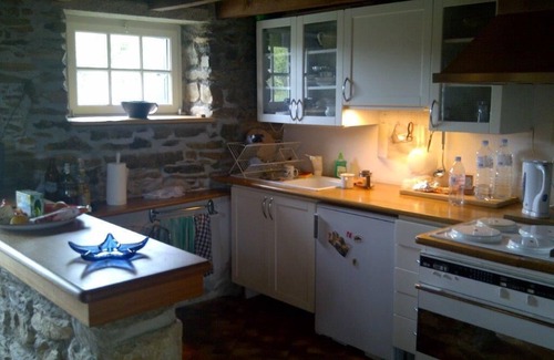 Breton stone house with large living room, fitted kitchen and fireplace. A bedroom with a double bed (160x200), a mezzanine (mezzanine) with a single bed (80x200) and a sofa bed (140x200). A bathroom with shower and washing machine. A separate toilet. Terrace with garden furniture behind the house and a fenced garden with garden house in front of the house on the other side of the street. Numerous beaches within a few minutes: Plage de la Fosse, La Grande Plage, Plage de la Mar, Plage de la Fresnaye, Plage de la Pissotte, Plage Pen Guen and Plage des 4 Vaux.