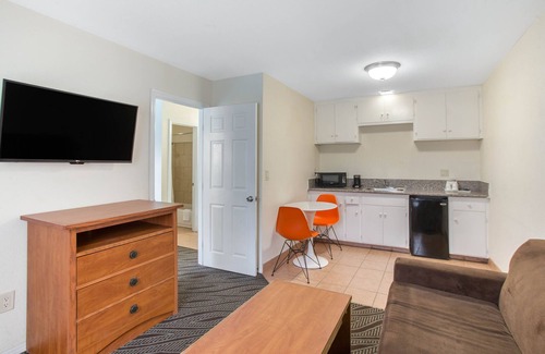 Experience Studio Suites Room With Sofa Bed and some room with Kitchen/Kitchenette accommodation.Guests will appreciate free Hot and Cold breakfast, free wireless internet Free Parking, business center and outdoor pool.