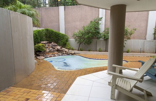 Morden contemporary-Luxurious and spacious apartment, enveloped by the beauty of nature and furnishings. Peace and tranquility flows throughout this villa. Situated in an elite suburb, Sandhurst, just 5 minutes drive to Sandton City. The bedrooms, lounge, dinning, balcony and garden are flawless. Can accommodate maximum of 8 guests. All bedrooms have an ensuite, a study or conference room is available for corporate guests. Fully equipped kitchen for self catering, however a chef can be arranged at a charge.