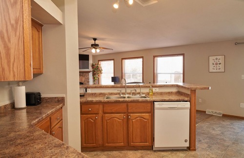 The kitchen is open and spacious, with seating at both the countertop bar and traditional kitchen table. On top of the traditional kitchen appliances such as the fridge and stove/oven, having a dishwasher is a convenience that is deeply appreciated when traveling with a family. It's also a pleasant surprise to have air conditioning, even though it often isn't needed in the upper peninsula. Plus, having an electric fireplace to soak in the ambiance and cool evenings sets an ideal tone of tranquility and ease.