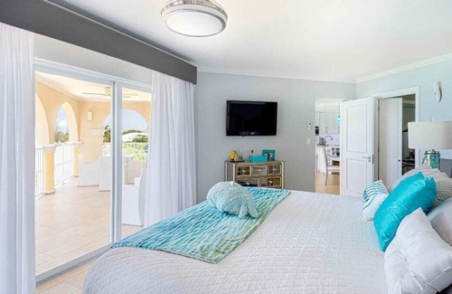 This stunning three bedroom luxury condo is situated on the fourth floor in the exclusive Sapphire Beach community in Barbados overlooking the turquoise waters of Dover Beach. The condo is elegantly decorated with a spacious open plan design that draws the views of the ocean in. The recently upgraded kitchen has a sit up breakfast bar and there is a separate dining area as well as a six seater set on the covered verandah where dinner can be enjoyed with the sounds of the ocean lapping against the shores.
