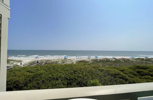 Relax and soak in the sounds of waves crashing as you fall in love with the breathtaking views of the ocean in our 2 bedroom and 2 full bath condo. With the newly added twin bunk beds, our condo is perfect for a family of 5 or 6. Brand new Tuft and Needle mattress in the master feels like home. The full Kitchen has everything you'll need to stay in and cook a family meal but there are also plenty of restaurants within minutes if cooking isn't your thing. Enjoy the views from your private balcony or lounge on the couch and soak in the sounds of the surf. Our private community beach always has tons of space for the family to play games or just stretch out and relax. For the nature lover, Caswell Beach is a Sea Turtle Protected sanctuary and you will see protected nests up and down the beach. Enjoy our arcade style Golden Tee game or bring the clubs and book your tee time as Oak Island Public Golf Course is short walk across the street..