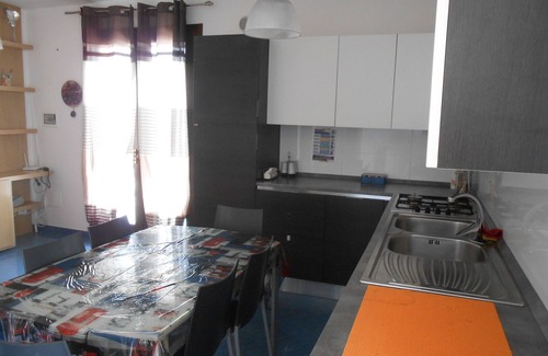 A disposizione posate, piatti, bicchieri, (olio, sale, aceto...) troverete anche pastigli per il lavastoviglie, detersivi vari, tovaglie, tovagliette. Nel soggiorno c'è un divano, TV e condizionatore, tavolo con 6 sedie, la lavatrice con stendino si trova sulla terrazza.