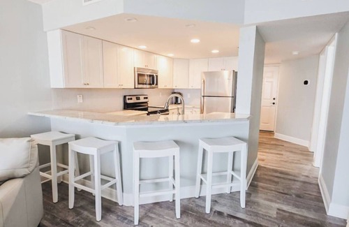 Located on the property is a large, heated saltwater pool! This is as close to the ocean as you can get! This completely updated condo is located on the 6th floor perfect for beach views with an excellent vantage point! It is directly on the ocean unlike many other condos that have a pool blocking your view of the beautiful Atlantic. The unit sleeps 7. The condo is a 2 Bedroom / 2 Bath accommodation. The master bedroom has a brand-new king bed with premium bedding and linens. The second bedroom is equipped with brand new queen over twin trundle bed. All furniture, mattresses and linens are brand new. The living room couch pulls out to a Full Sleeper. The furnishings are all brand new and tastefully decorated with a serene beach feel. Full size washer/dryer in unit, along with beach chairs and towels to use! Clean and crisp, this coastal condo is fully equipped and ready for you to enjoy!