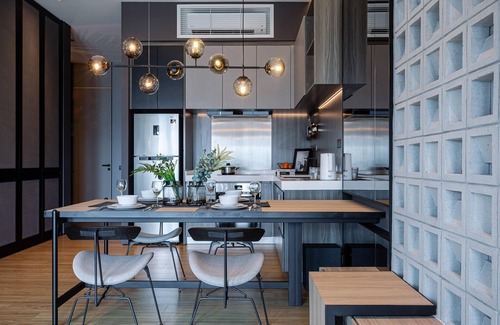 Unwind in the spacious living area, where a 65" smart TV with premium soundbar sets the stage for immersive movie nights. Gather around the elegant dining space or curl up on the plush sofa while soaking in the warm, natural light streaming through floor-to-ceiling windows.