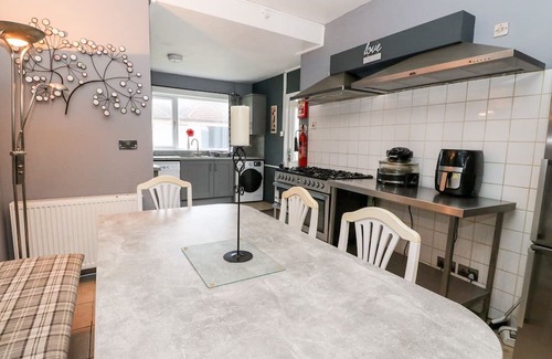 Amenities: Gas central heating. Gas range cooker, microwave, fridge/freezer, washing machine, dishwasher. 7 x Smart TVs, WiFi, pool table, gym equipment. Enclosed rear garden with lawn, patio, furniture and hot tub. Fuel and power inc. in rent. Bed linen and towels inc. in rent. Travel cot and highchair available on request. Off-road parking available. The property is in a residential area, due to this, the hot tub is out of use from 10pm onwards. Pet-friendly. Sorry, no smoking. Shop 0.2 miles, pub 0.1 miles, beach 0.4 miles. Note: There is ramp access to the property