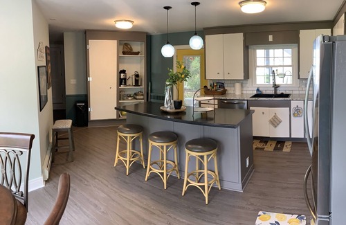 We transformed an original 1930’s cottage/1960’s outdated addition into a stunning all-season lake/beach encounter. Our property is not only secluded (end of a private road) providing a peaceful experience, we're also short walk or minute drive to charming Bemus Point Village--the best of both worlds!