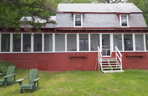 Rustic 4 bedroom home sits directly on Stinson Lake. Watch the sun set on the water as you dine on the screened in porch. This is a quirky 100+ year old cabin with some modern amenities added. Private dock with canoe, 2 kayaks and a paddleboard. Greatroom with dining/living space and large fireplace. Sauna, Charcoal grill and outdoor firepit. This house has all you need. Stinson Lake has beautifully clear water within walking distance of White Mountain National Forest trails. House has fully stocked kitchen, 2 half baths and a sauna with a separate shower. Improved for 2024: new stove and upgraded wifi.