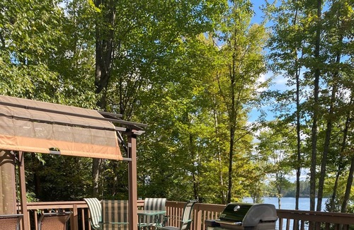 If you’re looking for a lakefront home with all of the amenities you enjoy at home, look no further. Private home on 3+ acres so no neighbors to look at unlike most lakefront property. Snowmobile and atv trails are directly across the street from the driveway. Property is sprayed every month for mosquitos and ticks, so forget the bug spray. (I’ve never gotten bit). Paddle board, kayaks, grill, internet, sand beach, boat house with every inflatable imaginable, and air conditioned. Throw the volley ball net up in the water, it’s shallow enough to play, or take a swim out past the dock where it drops to 43 feet deep. Full recreational lake, great fishing, (fishing poles are available) huge patio, with multiple tables and chairs, hammock, jet ski is available for an additional cost. We absolutely love this place