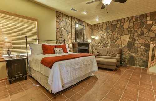 * King Master Suite on TERRACE level with gas fireplace (fireplace season 10-1 thru 4-30), 50" Flat Screen, Private Bath tub/shower combo, microwave