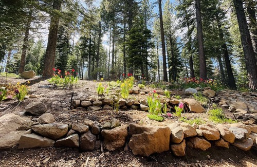 Our secret gardens are a work in progress to bring beautiful flowers to terraced rock gardens around the property. We planted bulbs for a beautiful show in spring. Our new plantings also offer autumn color.