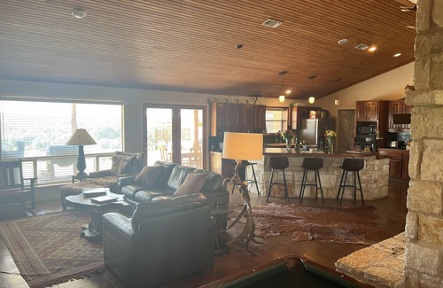 Whiskey River Ranch in Llano, Texas is a working ranch in central Texas perfect for viewing the April, 2024 Texas Solar Eclipse. This main ranch house provides guests a prime place to enjoy the solar eclipse and the Texas hill country, near Fredericksburg. The main owners home features three bedroom and two bathrooms. The master suit is being completely remodeled. This home provides guests with exceptional accommodations, including a large fire place, dining room, pool table and front and back porches for enjoying the sunrise and sunsets. The ranch is situated West of Llano and due north of Fredericksburg. The ranch runs south of the Llano river on Ranch Road 152, near the County Road 102 crossing. The ranch features the merger of Hickory Creek and Bullhead Creek. The Ranch house has a giant grand view of the Texas hill country.