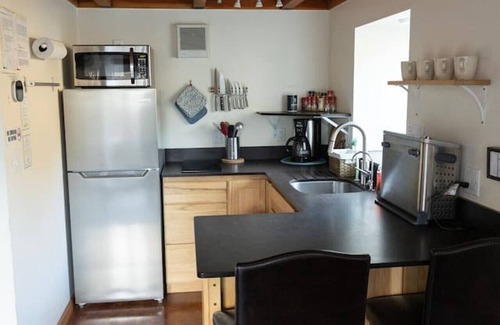 Guests also have free WiFi access and use of a gas grill for outdoor dining. Plus, the home features a 40-amp Level 2 EV charger (SAE J1772) for electric vehicles. Tesla owners must bring their own adapter. The cottage can accommodate up to 4 guests with the use of the pull-out sofa bed and clean linens provided.