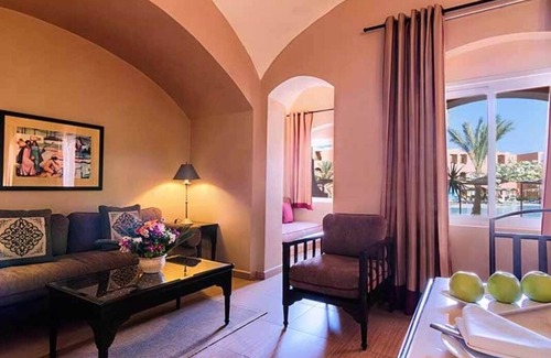 Discover a vibrant resort with endless fun and relaxation. Splash into Makadi Water World Aqua Park, tee off at nearby Madinat Makadi Golf Resort, or unwind on Makadi Beach. Just 15 miles from Hurghada Airport, it's ideal for water sports, culture, and family adventures—all in a stunning, palm-filled paradise.