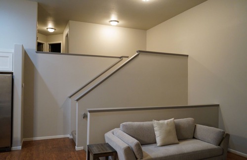 The upper level consists of 2 bedrooms with new beds, comfortable mattresses, and cozy linens. One king bed is in the master room with brand new furniture, an en-suite bathroom for added convenience and privacy, spotless bathrooms with lots of towels, wash clothes as well as shampoo/conditioner/body wash, a hair dryer, first aid kit, countertop canister jars with lids filled with floss picks, cotton balls, and cotton swabs are provided.