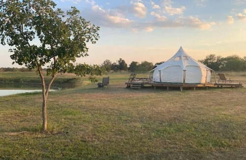 Welcome to our Family Homestead In Mcdade, Tx. Enjoy your Private Lotus stargazing tent with a deck big enough to relax or do yoga overlooking our incredible pond! Electric heater and portable air conditioning. Bathroom facilities near by with shower. Enjoy our salt water jacuzzi, and non chlorinated pool! Visit the animals or garden. Explore the land, fish or kayak. https://www.airbnb.com/h/amazingraze2 check our other listings if booked!