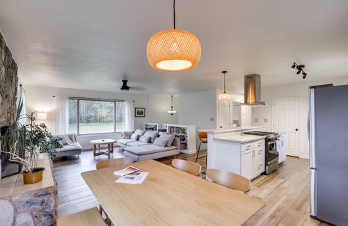 Eat, sleep, and explore in the heart of Palmer at this 4-bedroom, 2-bath vacation rental, equipped with modern features like a chef's kitchen and a well-appointed living room. Fit for the whole family, this mid-century modern gem lies within walking distance of downtown, the Matanuska River Park, and the Palmer Rail Trail. Other local excursions include everything from dog sledding to glacier tours to world-renowned salmon fishing. So what are you waiting for? Alaskan adventures start here!