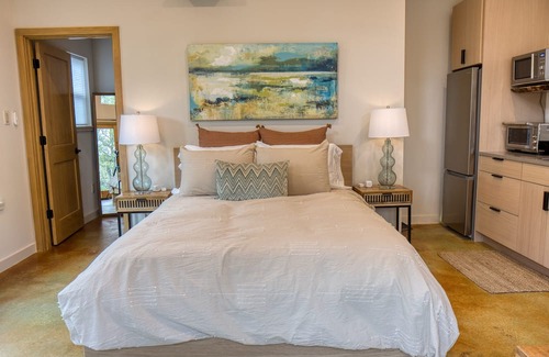 Tucked in a wooded one-acre lot, this new retreat blends luxury, nature and ease of access to Austin's events. The covered patio offers an ideal setting to embrace the morning serenity or indulge in sunset dining. High-speed internet ensures seamless remote work and HD streaming. Conveniently located between downtown Austin and the Hill Country is great for Hill Country weddings, wine country, SXSW, CODA or ACL Festival. Whatever you're here for, an unforgettable experience awaits.
