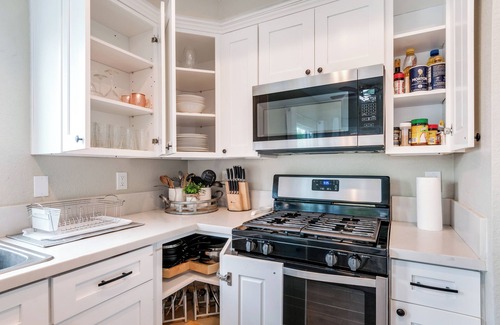 The Kitchen: Immerse yourself in culinary adventures with our well-equipped kitchen, complete with a refrigerator, stove, sink, microwave, coffee pot, Keurig, toaster, cooking ware, plates, cups, and utensils.