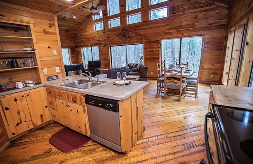 Seven Eagles provides the perfect getaway for two couples or a small family with a king bed downstairs and a queen bed in the loft area upstairs. The kitchen offers all the amenities of home including both a regular coffee pot and a Keurig coffee pot. All you will need to do is bring your favorite food and beverage.