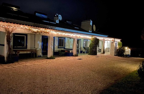 In the Alentejo countryside, this charming quinta in Montemor-o-Novo blends rustic charm with modern comfort. Nestled in an 8-hectare olive grove with a tropical garden, it offers a serene escape for families and small groups. Cool off in the large communal pool (8 x 20 m), relax on the terrace with views of rolling hills and Montemor-o-Novo castle, or enjoy shared barbecue evenings. Children have a separate pool, and the property is wheelchair-friendly with wide entrances and no thresholds.