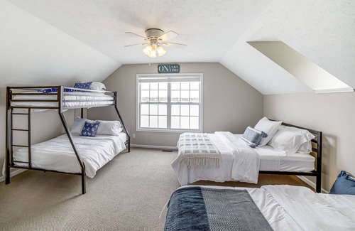 Bedroom 1: Queen Bed | Bedroom 2: Queen Bed | Bedroom 3 (Loft): Twin/Full Bunk Bed, 2 Full Beds | Additional Sleeping: Pack ‘n Play