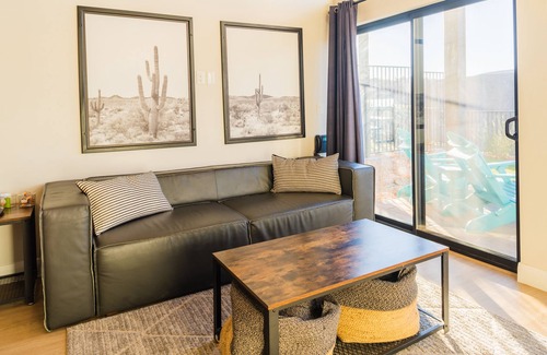 Inside every Dwelling, you will find a great balance of modern designs, classic touches, and technology features. 800 square feet with 1 bedroom home with vaulted ceiling and a bunk loft for extra guests. The great room features 12' vaulted ceilings, expansive windows, double glass doors, contemporary finishes, and a bright warm feeling throughout. This dwelling is also pet-friendly with a limit of 2 pets.
