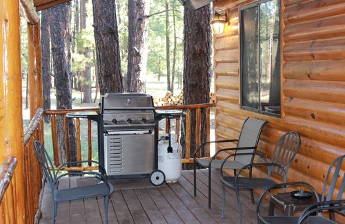 Our Shoshone Cabin is a great cabin for large groups! It has lots of sleeping space. It is a 2 bedrooms (one with a king & the other a queen size bed) It has 2 baths--one with a large double jacuzzi bathtub (with double shower heads) & the other a shower. It sports a huge loft that has 2 queens, 1 full & 3 twins, as well as an air hockey game! The great room also has a queen & full size futon. This cabin has a fully equipped kitchen, gas fireplace, smart TV, WiFi, washer/dryer, air hockey game, gas BBQ, horse shoe pit, campfire pit & volleyball net & ball. We are located just across the road from the 3 Greer Lakes which is stocked with fish by AZ Game & Fish.