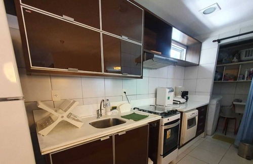 Cozinha completa com fogão, geladeira, lavadora microondas, máquina de café, liquidificador entre outros utensilios,