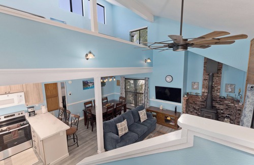 The loft area boasts two queen/twin bunk beds, making it perfect for accommodating large groups or families with kids. With a total of nine separate beds, this condo offers ample space and comfort for your stay in June Lake.