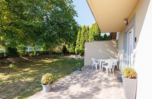 Zalakaros 33 km from Keszthely: Comfortable apartment house, 2 storeys. 4 apartments in the residence. In a quiet, sunny position, 19 km from the lake, 33 km from the beach. For shared use: property (fenced). Fireplace (slide, sandbox). Private: terrace. In the house: air conditioning. Grocery 700 m, restaurant 1 km, bakery 800 m, bicycle rental 1.8 km, bus stop "Zalakaros, újmajori elágazás" 750 m, railway station "Zalakomár" 7 km, thermal baths "Hévíz" 32 km. Tennis 2 km, riding stable 7 km, children's playground 1 km, fishing possibilities 8 km. Nearby attractions: Kis-Balaton Visitor Center 33 km, Zalakaros Thermal Bath 1.3 km, Keszthely Giant Wheel 41 km, Festetics Castle 33 km, Kristinus Wine Estate 35 km, Museum of Lake Balaton 40 km. Please note: baby equipment on request.