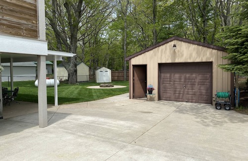 Custom Cottage features over 2400sq ft sleeps up to 12, offers ample parking, and all of the modern amenities you're looking for. Home is located off the main road and less than a block from the famous Mac Woods Dune Rides, Whippy Dip, and only minutes away from Restaurants, Silver Lake and the Dunes! A 50amp hookup for EV/RV plug in is also available. Relax on the front porch in the morning and enjoy time together on the covered patio behind the home in the evening!