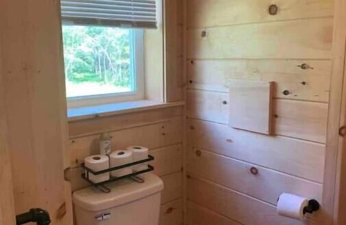 Quick access off Route 2 and just minutes from Interstate 95. One room open concept cabin with a loft. 1 queen size bed in the loft, bunk twin beds down stairs, full bathroom with shower, full kitchen with pots/pans and utensils. Ladder to loft is just that, fairly steep and narrow.