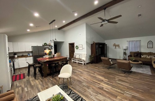 At the end of the day, after all your adventures come back to the cabin to relax. The open floor plan allows everyone to spend quality time together whether in the kitchen cooking or taking it easy in the living room. The cabin’s decor gives it a cozy feel. It comes fully equipped with all the necessities to make it feel like home away from home. It includes a washer, dryer, dishwasher, refrigerator, stove, oven, microwave, coffee maker that has both carafe and k-cup, bed and bath linens, all the kitchen basics, a charcoal grill, and TV’s with Dish Network. No wifi available. Good cell phone reception. The cabin sleeps 12 people. It has 2 bedrooms that both have queen size beds. It has a bunk room that has 2 sets of full over full bunk beds (top bunks should only have one person and no one under the ago of 6 years old on top bunk). Use bunk beds at your own risk. A spiral staircase leads up to the loft overlooking the living room. The loft has 2 twin size beds. The cabin has 2 full bathrooms. The living room has a large sectional. There is an additional lounging area with a sofa. We have two tables for dining. One table has 8 chairs and the other table has 4 chairs. The cabin has a covered front porch. There is a fire pit with chairs and a picnic table outside. We have a number of board and card games available. Wake up and look out the windows to possibly catch a glimpse of the local wildlife. Another cabin (Simply Buffalo) which sleeps 10 is located on the property about 100 yards away. It may also be available for rental if needed.