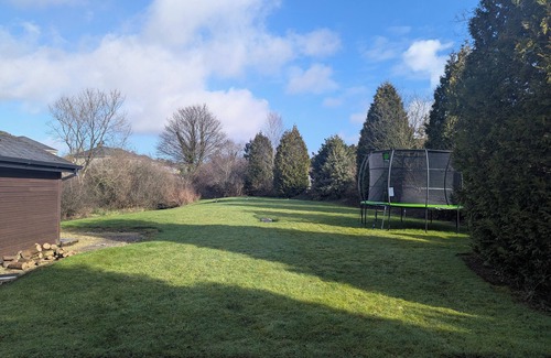 Enjoy village life in a quiet, attractive country setting. Walking distance to local village with 2 pubs, takeaway shop, café, supermarket and church. All bedrooms are good size including three with ensuites. There is a large open plan kitchen/dining room area, a large living room/2nd dining area with a double-sided wood fire place. Under-floor heating throughout the house. Bring the whole family to this great place with lots of room for fun.