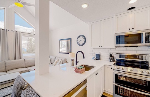 Go big in Big White at this modern mountain view condo! Boasting ski-in/ski-out access, this two-bedroom is the perfect home base for slope-side adventures. This isn't just ideal for shredding powder though - Big White is home to a bevy of year-round activities with the off-season offering great opportunities for hiking, fishing, and mountain biking. A bright, open interior welcomes you in after a day of adventures. Unwind in the living room while gazing out the large, picture windows or catch up with your favorite shows and movies on the wall-mounted smart TV. An electric fireplace offers cozy ambiance at the flick-of-the-switch. You'll find the kitchen completely outfitted with updated, stainless steel appliances, including a dishwasher for easy cleanup. A built-in breakfast bar offers seating for four. Free Wifi and a private washer/dryer round out the in-home essentials.