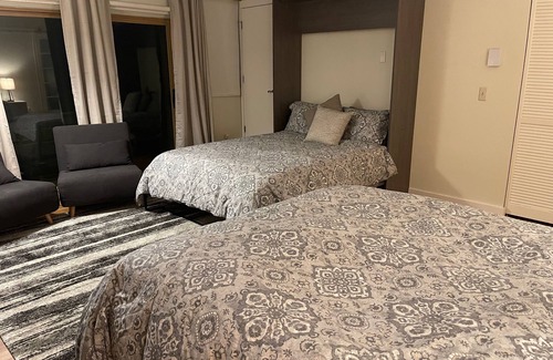 Lower Level: The lower level is a very large bedroom with private bathroom and multiple beds that can accommodate up to 6 adults