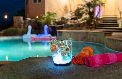Sky Candy Estate - Sunrise+Sunset Views, Pool, Spa is located in Crest. Sky Candy Estate - Sunrise+Sunset Views, Pool, Spa provides accommodation, featuring Security/Safety, Bedding/Linens, Fireplace/Heating, among other amenities. This House features Security/Safety, Bedding/Linens, Fireplace/Heating, to make your stay a comfortable one.