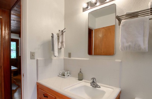Special attention has been given to comfort. Each bedroom has a king sized memory foam bed and luxurious new bedding and linens with both down and down alternative pillows. Each bedroom also has an adjustable wall heater. The bathroom features a shower/bathtub combination and a powerful wall heater. hand soap, toilet paper and fresh towels are provided. Most rooms overlook the 2 1/2 acres. Easy access and easy parking. Fenced side and back yards for those well behaved doggies, we welcome your dog companions just please let us know and we can make arrangements for them. Truly a delightful place to stay and to call home! We welcome
