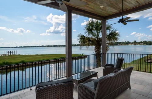 Private Pier, Balcony & Patio! Sleeps 12! Designed to captivate, this home pulls you into its warmth with its expansive rooms, details, and unparalleled view. Featuring a bed swing on the pier, a well-furnished upstairs balcony, and oversized patio, Sky View is meant to draw you outdoors. So grab a drink, find your spot, Whether it's the upstairs balcony or the bed swing on the pier, there's no better place to be as the sun sets on the water.