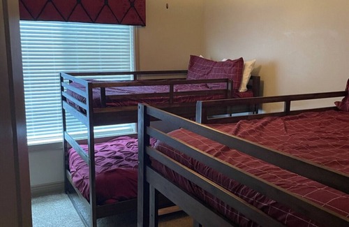Situated right between downtown St. George & Zion National Park, Coral Springs Resort is an ideal place to explore southern Utah in all of its recreation & beauty. Visit Snow Canyon, Quail Creek & Sand Hollow Reservoirs, Grand Canyon -Arizona’s pride and joy – without any of the congestion from the larger suburban area of St. George. Hike, climb or zip line, the luxury of Coral Springs will welcome you home to relax at the pool, in the hot tub, in front of the fire. SLEEPS 12, DOUBLE BUNKBEDS.