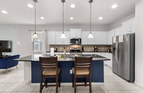 This beautiful 8BDR is perfect for family vacations or relaxing getaways! Our home offers space, comfort, and convenience. Enjoy easy access to Disney, shopping, dining, and more. We’re here to make your stay stress-free—ask about our services! If unavailable, inquire about our 50+ other homes to find your perfect match! Experience a comfortable and convenient stay in our thoughtfully designed space, perfect for families, groups, or anyone looking for a stress-free getaway. What’s Inside Central AC: Stay cool and comfortable with air conditioning to keep the indoor temperature just right. Free Parking: Enjoy hassle-free parking right at your doorstep, making arrival and departure simple. Gated Community: Rest easy in a secure and private gated community for added peace of mind. Fully Equipped Kitchen: Cook your favorite meals in our kitchen, equipped with all the essentials and modern appliances. Washer and Dryer: Pack light and enjoy the convenience of in-home laundry facilities, making longer stays even easier. Free Cable TV & WIFI: Stay connected and entertained with complimentary high-speed WIFI and cable TV. Cozy Family Room: Spend quality time with loved ones in a comfortable family room perfect for movie nights and relaxing together. Furnished Patio with Sun Loungers: Unwind outdoors on our furnished patio, ideal for soaking up the sun or enjoying a quiet evening. Fresh Towels and Linens Provided: Start your stay worry-free with clean, fresh linens and towels ready for you. Hair Dryers in Suites: Enjoy the convenience of a hair dryer in each suite, making it easy to get ready for your day. Iron & Ironing Board: Keep your clothes crisp and ready with an iron and ironing board available for use. Optional Pool Heat & BBQ Rental: For a small fee, enjoy a heated pool or rent a BBQ for outdoor dining and fun. Private Door Code: Simplify your check-in and check-out with a private door code provided for your stay. Ample Parking Space: With space for one car in the driveway and additional parking nearby, there's room for everyone. Nearby Stores & Essentials: Publix Super Market: Just 5 minutes away for groceries and everyday needs. Walmart Supercenter: A quick 10-minute drive for all your shopping needs.