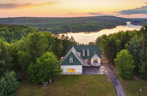 This MASSIVE 6,000 sqft home has 6 bedrooms, 5 bathrooms, sleeps 20 guests, and is LOADED with amenities! It is centrally located near Giants Ridge Ski Resort, The Quarry & Legend Golf Courses, and has public boat and lake access in Voyageurs Retreat. Enjoy a barrel sauna, game room, outdoor playground, firepit, and epic lake or ski slope views. This is the Ultimate Minnesota Escape Up North for large groups of Family and Friends All Year Long!
