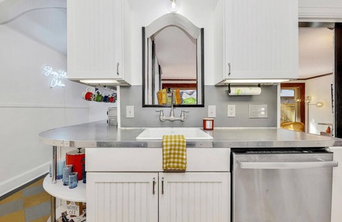 Please keep in mind that we do not host large family gatherings over 20 (per City rules) people. Parking between the private drive and curbside can accommodate 4-5 cars. We do have multiple rooms with a step-down/step-up into the next room which may be difficult for thise with mobility issues. Please consider this when booking.