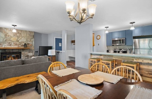 Our unit features an open concept living space with 2 bedrooms and 2 full bathrooms. The kitchen, equipped with a breakfast bar and stainless steel appliances, has all of your basic cooking needs (pots, pans, cutlery, etc). The spacious den has an L-shaped couch. Enjoy the smart TV and Bose sound system while the fireplace crackles in the background. Another great feature is a dedicated ski/snowboard locker located just outside the unit. The unit is also located just a few steps away from the Sportscenter which makes it easily accessible!