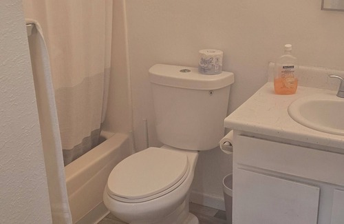 This is a basic, quiet 4 bedroom house with 3 queen beds and 1 King bed including TV's in each room. The house is small but bedrooms are decent size. We have 2 extra mattress in the master bedroom closet if needed and a sofa couch. Centrally located and with minutes from all of the food and stores you can think of and right off a freeway exit. Full Kitchen and 2 full bathrooms. Laundry room is also attached.