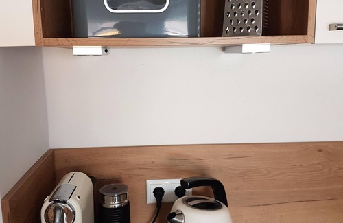 Our modern - romantic non-smoking apartment was completed in June 2019. The cozy approximately 33sqm apartment is divided into two rooms open. A bedroom with bed (160x200) with large wardrobe, chest of drawers and TV. The dining-living room has a well-equipped kitchen.