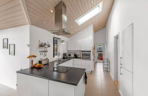 Single-family house, built in 2017. 1.1 km from the sea. Private: property 1'083 m2, well-kept garden. Barbecue. In the house: sauna, washing machine, tumble dryer. Parking at the house. Grocery 750 m. The owner does not accept any youth groups.