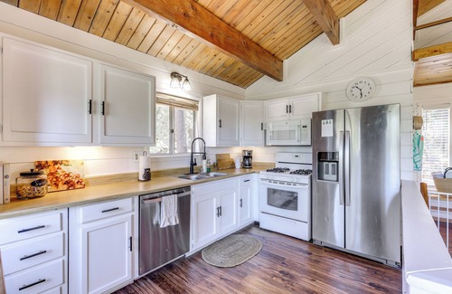 Plan a getaway to Arrowbear Lake and book a stay at the lovely 'Snow Valley Hideaway.' Situated between Big Bear and Lake Arrowhead, this 2-bedroom, 1.5-bathroom vacation rental features a Smart TV to catch up on your favorite show, 2 decks with forest views, and a wood-burning fireplace. Enjoy a day on the slopes of Snow Valley Mountain Resort or tubing at Snowdrift Snow Tubing Park. You'll never run out of nature to explore with all the hiking trails nearby!